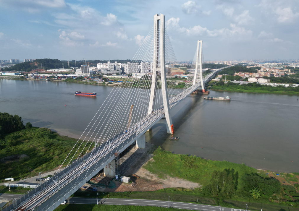 此次启动联调联试的广州至新兴南段,正线长127公里,包含67座桥梁、21座隧道,桥隧占比高达79%。线路沿线地形地貌多样、地质条件复杂,尤其是广州至佛山段深入城市核心区,施工空间局促、组织协调难度大、安全管控要求极高。其中文昌隧道、珠江四线特大桥、佛山特大桥跨西江桥、佛肇站等一系列控制性工程,均为全线建设的重难点所在,凝聚了工程技术与建设智慧的重大突破。
